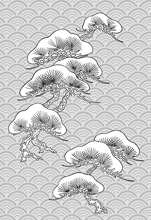 Vector line drawing of flowers-32(Pine, classical wave background)