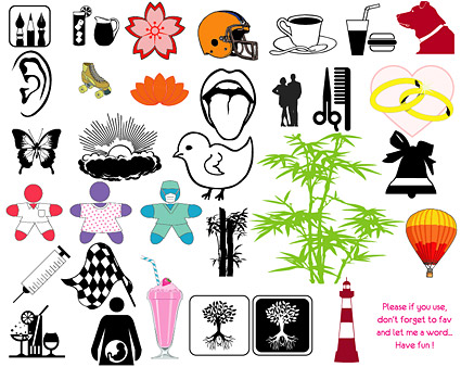 eps format, keyword: vector, pens, flowers, water bottles, coffee mugs, drink, services, dogs, ears, the lotus, scissors, combs, hearts, butterflies, the sun, clouds, chicken, bamboo, syringes, trees , Hot-air balloon……