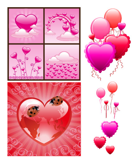 eps format, keyword: vector material, vector heart-shaped, love, Valentine's Day elements, crystal heart-shaped, clouds, rainbow, balloons, Ladybug