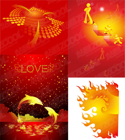 ai format, keyword: flames, arrows, dolphins, three-dimensional figures, running, stairs, love, Stars glittering