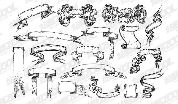 eps format, GoMedia material produced vector-Set 12, critical words: vector ribbon, streamer, banner, croll, paper, paper, the old, old, European-style elements, worn-out, fluttering, the trend of decorative elements, vector material