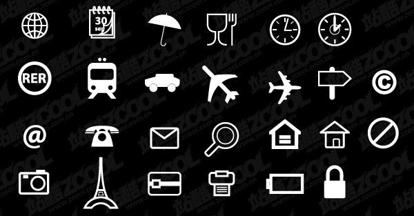ai formats, including jpg preview, keyword: vector icon, Hitachi, umbrellas, dishes, clock, the Earth, trains, automobiles, aircraft, road signs, copyright, e-mail, phone, envelope, the house is prohibited, cameras, Tower, Printers, batteries, locks, symbols, graphics, vector material