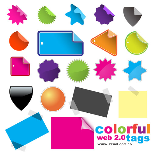 eps format, including jpg preview, keyword: vector web2.0, tags, angle, roll angle, web design elements, circular, star, coat, paper notes, notice, circular gear, vector material < br />