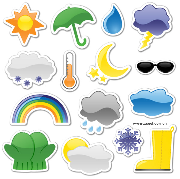 eps format, including jpg preview, keyword: Vector icon, the sun, umbrellas, water droplets, clouds, lightning, snow, thermometer, moon, stars, sunglasses, rainbow, next month, gloves, surplus, boots, water shoes, Vector material