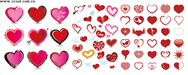 Number of various elements of style heart-shaped vector material