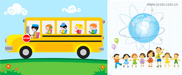 eps format, including jpg preview, keyword: Vector characters, children, 61 children's festivals, clouds, and school bus, flowers, earth, hand in hand, balloons, vector material